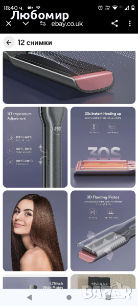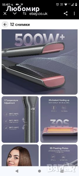 Нова без опаковка .По-малко къдрене, повече блясък. Нашата професионална преса за коса излъчва 500 W/m2 отрицателни йони, които се движат през уникалния жлеб между плочите. Високата концентрация на отрицателни йони помага за подхранването на косата чрез ефективно проникване и възстановяване на кутикулите, което улеснява създаването на гладки, елегантни стилове с по-малко къдрене и повече блясък.Лесно оформяне с по-малко щети. Снабдена с големи плочи от 1,75 инча, нашата преса ще ви помогне да изправите голяма част от косата си само с няколко движения, намалявайки драстично времето за оформяне. Тази преса за коса е подходяща за всички типове коса и се предлага с 11 регулируеми температурни настройки (130℃-230℃), предназначени да ви осигурят оптимален контрол върху оформянето на къса, дълга, гъста, тънка, повредена или здрава коса.Копринено и елегантно покритие. Нашите уникални 3D нано-титаниеви плаващи плочи автоматично се приспособяват към вашата коса, докато я оформяте и са устойчиви на корозия, което ги прави идеални за гъста коса, която е трудна за укротяване и склонна към закъсване. Плюс това, те провеждат ултра висока топлина, като ви помагат да създавате салон стил всеки ден.