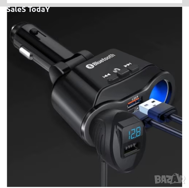 Трансмитер с блутут, 2 USB порта, Свободни ръце-Вграден микрофон, 2 гнезда