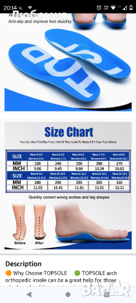 ортопедични стелки за плоски стъпала - Поддържащи стелки за плантарен фасциит при метатарзалгия, шипове на петата, болки в краката - Амортисьорни стелки за бягане/ходене/изправено положение - Стелки за обувки за жени и мъже.Ортезните стелки с твърда опора на свода и дълбока U чашка на петата поддържат краката позиционирани и стабилни. Подложката от пяна под долната част на стелките облекчава болката в петата и осигурява повече възглавница и комфорт. Ортопедичните стелки TOPSOLE се препоръчват от ортопедите за предотвратяване и облекчаване на болки в краката, плантарен фасциит, подбедрица, болка в петата или свода, неврома на Мортън и други често срещани болки в краката.Стелките за плантарен фасциит TOPSOLE предлагат здрава опора на свода, изработена от твърд TPU и омекотяващ слой с основа от EVA мемори пяна с висока плътност. Облекчете и предотвратете болката в краката, като същевременно поддържате краката сухи, без мирис и мехури по време на употреба, тези стелки за поддържане на свода. Подходящи за всички типове сводове, могат да балансират структурата на силата на стъпалото и да коригират необичайните модели на ходене.