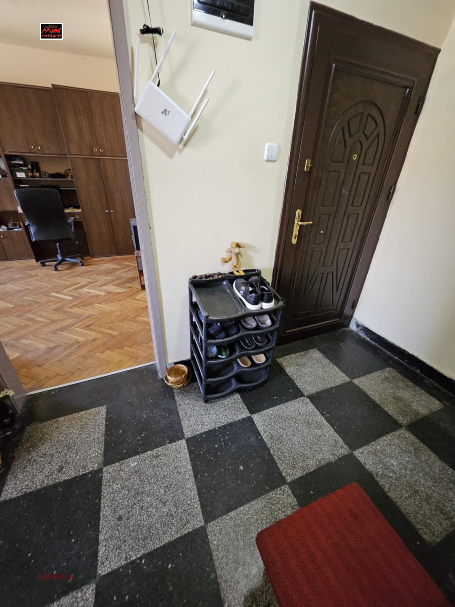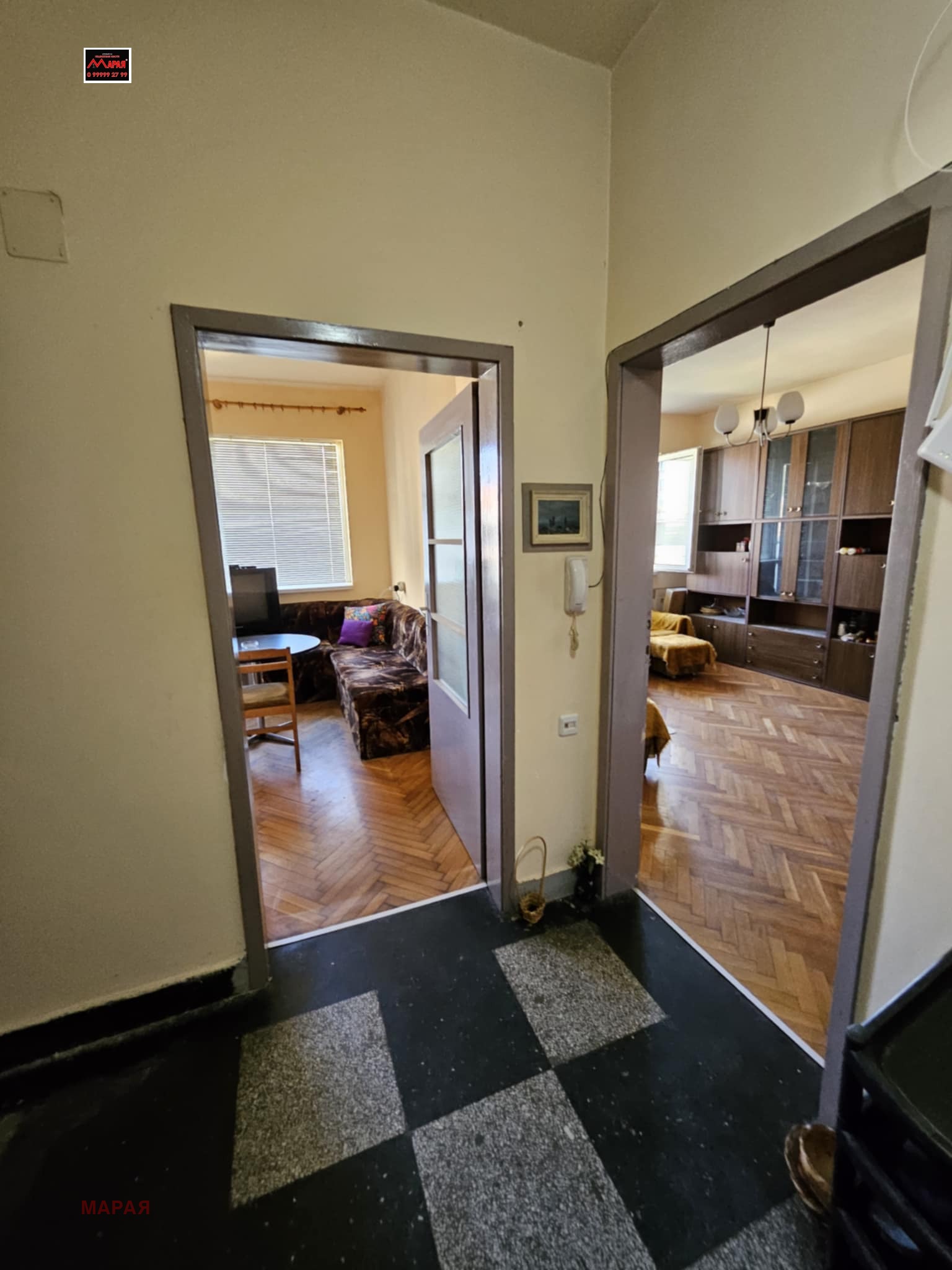 Реф номер 13530 КЛЮЧ В ОФИСА НА АГЕНЦИЯТА! ЕКСКЛУЗИВНИ ПРАВА КЪМ ТАЗИ ОФЕРТА! Агенция 'Марая' Ви предлага изключително атрактивен имот в идеалния център на града до ул.П. Д. Петков. Представлява тристаен монолитен апартамент със 110 кв.м. чиста жилищна площ, на пети сграден етаж. Състои се от просторен и слънчев хол, голяма кухня, широко антре с дълъг коридор и две отделни самостоятелни спални, едната от които е с размера на хола. Отделни баня и тоалетна. Всички помещения имат излаз на голяма открита тераса. Изцяло източно изложение, което го прави сутрин слънчев, а в топлите следобедни часове прохладен. Има прилежащо избено помещение, както и голяма таванска стая, която се намира над едната спалня. Апартаментът е с ПВЦ-дограма и паркет по пода. Отоплението е на ток, но до етажа има прокарана газ.
