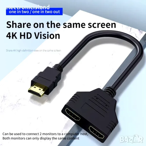 Сплитер кабел HDMI HD за преобразуване 1 мъжки към двоен 2посочен женски 1080P кабел за PC PS TV Box