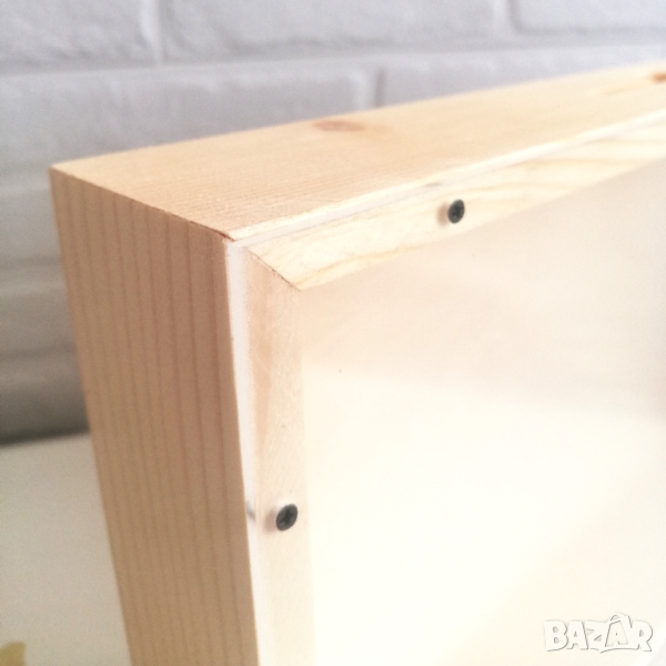 Дървена кутия рамка с прозрачен капак за събиране на коркови тапи и др → Обява 44783671