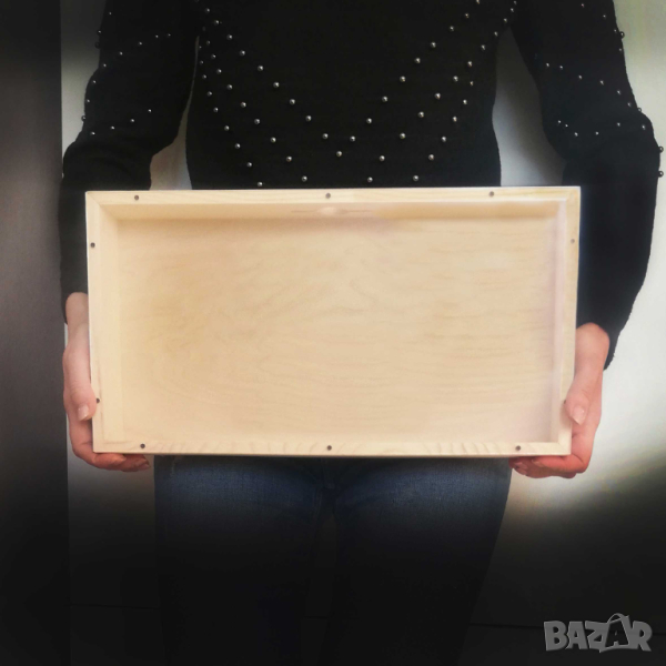 Размер: 20 x 38 x 6 cm, светло необработено дърво. Дебел прозрачен акрил отпред.