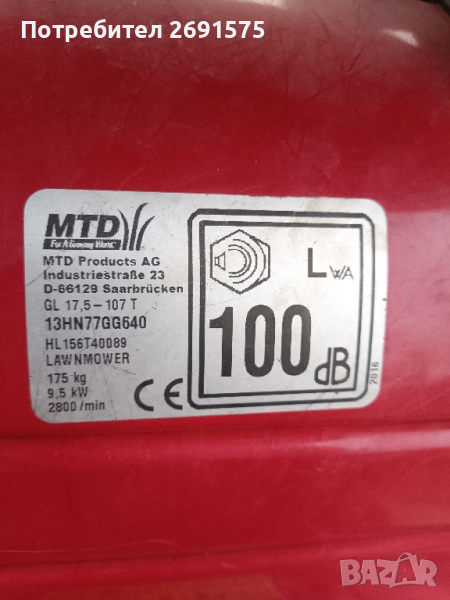 тракторна косачка MTD17.5-107см, снимка 1 - Градинска техника - 44789248 тракторна косачка MTD17.5-107см, снимка 2 - Градинска техника - 44789248 тракторна косачка MTD17.5-107см, снимка 3 - Градинска техника - 44789248 тракторна косачка MTD17.5-107см, снимка 4 - Градинска техника - 44789248 тракторна косачка MTD17.5-107см, снимка 5 - Градинска техника - 44789248 тракторна косачка MTD17.5-107см, снимка 6 - Градинска техника - 44789248 1/6
