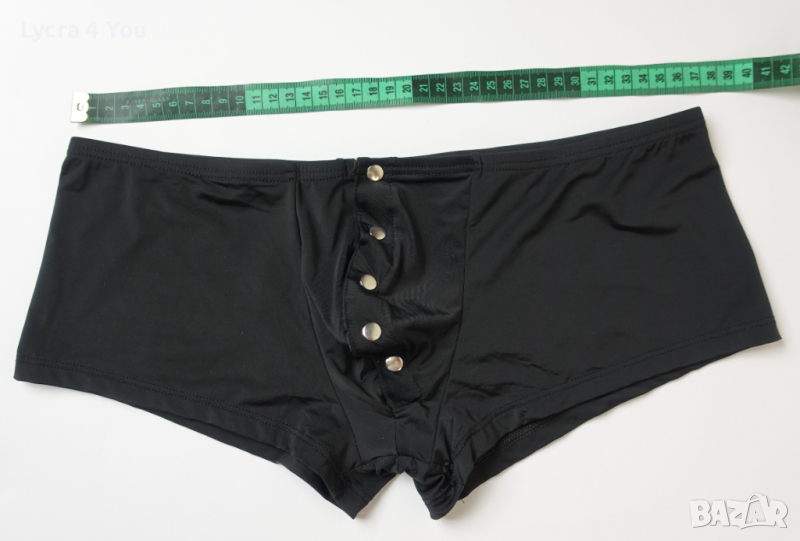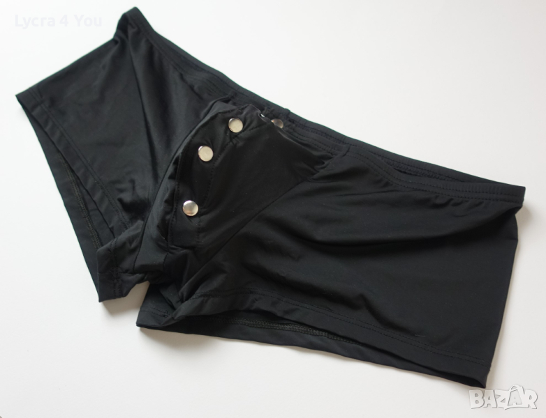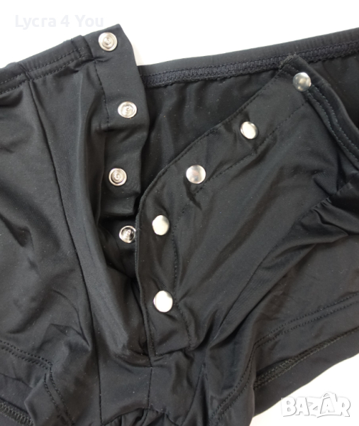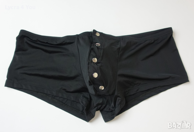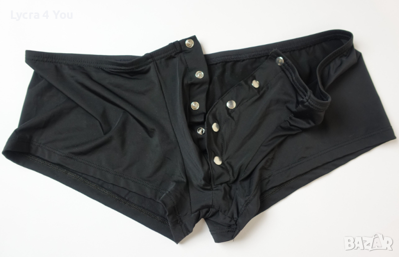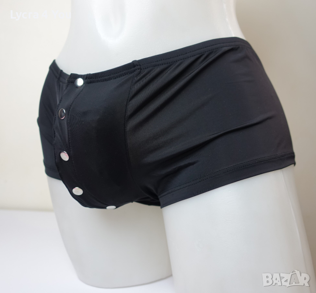 Съблазняващи мъжки боксерки с предно разкопчаване с тик-так метални копчета. Бельото е с ниска талия (леко плитък модел) и е от приятна и мека материя с лека лъскавина (полиамид с ликра).