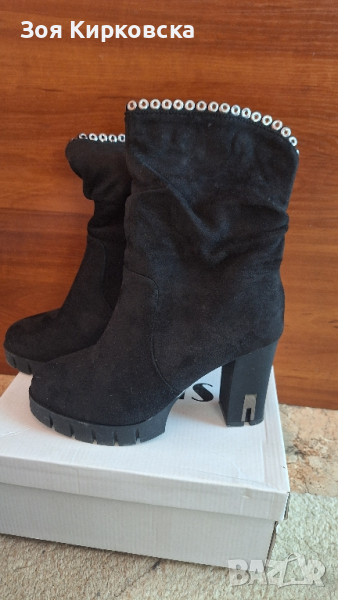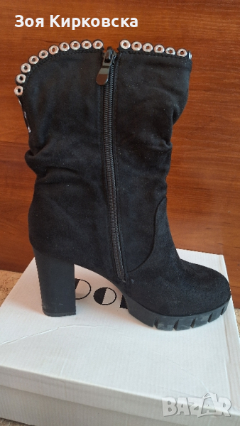 Дамски велурени боти с ток.Много удобни ,елегантни и стават както за официални така и ежедневни случаи.Номера е 38 а дължината на стелката е 24,5см.