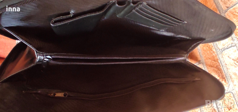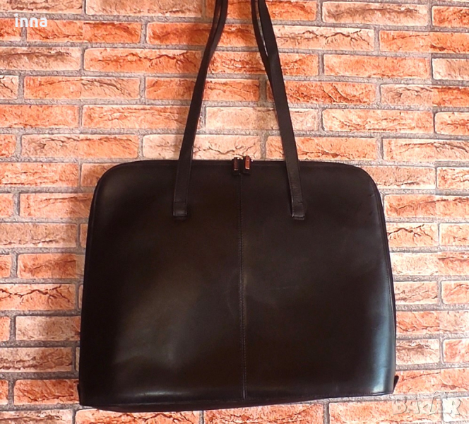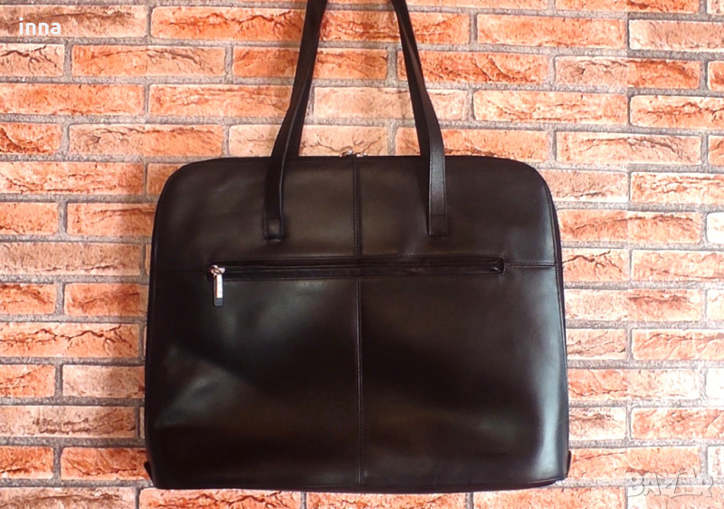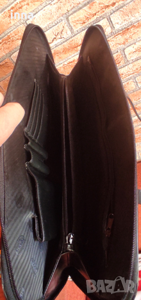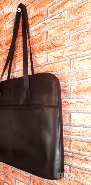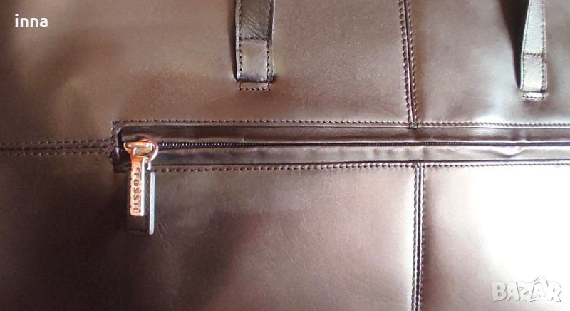 Здрава, елегантна и представителна дамска бизнес чанта FOSSIL от естествена кожа. Голяма, функционална, удобна за ползване. Черна. Оригинална, с лого на лицевата част, лога на циповете и на подплатата. Много запазена, никакви следи от употреба във вътрешната част, работещи оригинални ципове.