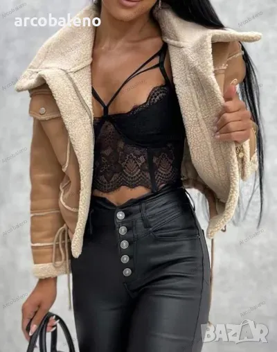Ликвидация! Ново дамско късо палто от изкуствена агнешка вълна, яке с цип - Доставка 24 часа