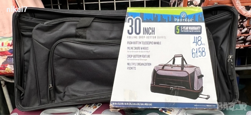 Сак от текстил с две колела и оптична дръжка. Подходящ както за носене така и за дърпане.