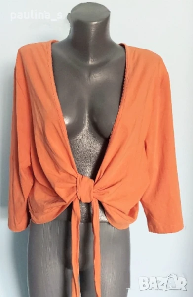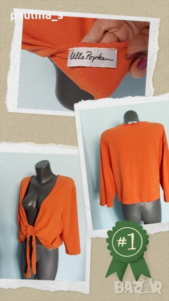 2️⃣. Колаж / 2XL / 5XL - "Ulla Popken". Цената е крайна 29,99лв / 15 евро. Брандов топ с предно завързване в екзотичен цвят. Материята е памук и ликра, доста еластична и покрива няколко размера до 5XL. Една бройка е, нов без етикет и дефекти.