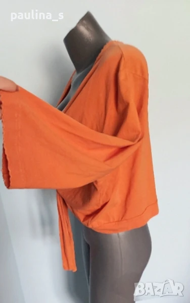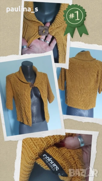 3️⃣. Колаж / XL / 3XL - "United colours of the world" by Benetton. Цената е крайна 29,99лв / 15 евро. Уникален памучен топ в цвят Горчица, ръчно плетиво. Преждата е памук с примеси и дава еластичност, възможност да се носи от няколко размера, посочени са. Копчето е от естествена кост, ръкавите са с плетеници и започват от бието, дрехата е уникална.