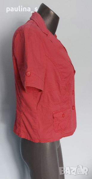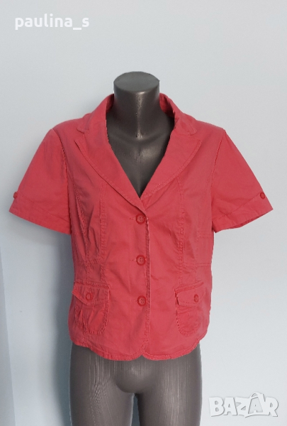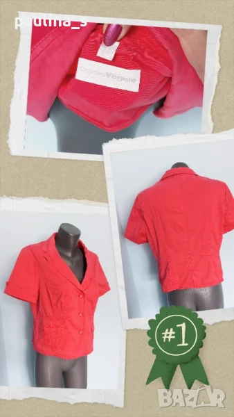 1️⃣. Колаж / XL / 3XL - "Charles Vogele". Цената е крайна 29,99лв / 15 евро. Ново спортно сако в екзотичен цвят, втален силует, джобове и къс ръкав, резервно копче. Материята е еластична и покрива няколко размера, посочени са. Голям размер, една бройка е, без дефекти и етикет.