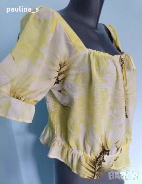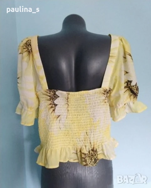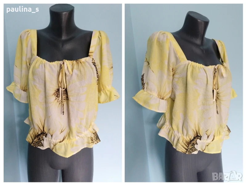 4️⃣. Колаж / XL / 3XL - "H&M". Цената е крайна 29,99лв / 15 евро. Уникален топ тип бюстие с буфон ръкави, ластици на задната част, рюш в набор за декорация. Материята е немачкаема ликра, приятна за носене. Ново е без дефекти, само ефекти; една бройка.