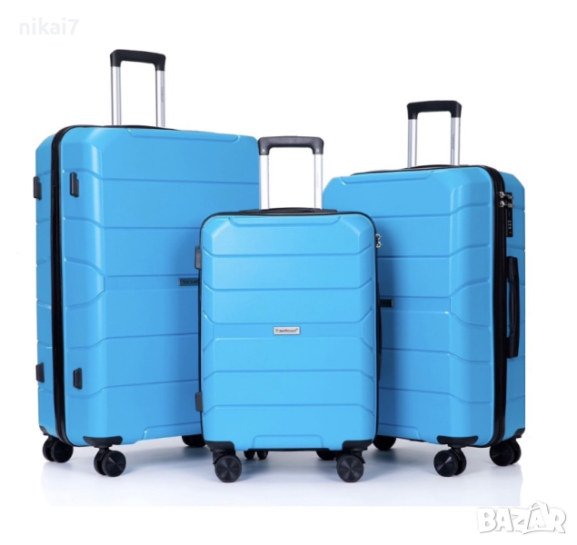 пътнически куфар комплект 3бр 100% ABS удароустойчив лек 4 колела 360°