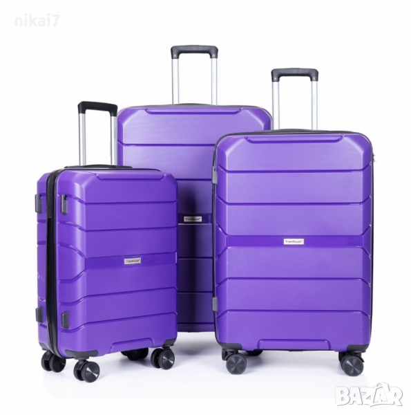 WeTravel пътнически куфар комплект 3бр колела 360°+разширител с цип