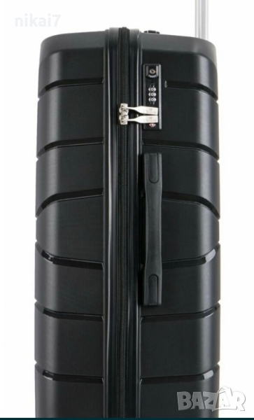 Куфарът се заключва с цифров шифър и има регулиращ ,телескопичен теглич
