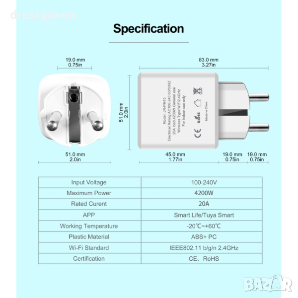 Поддържани приложения: Smart Life, Tuya, Google Assistant, Amazon Alexa