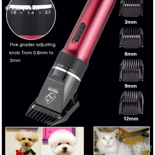 Край на гъстата козина, която се явява бреме за всяко животно по време на летните горещини! Край на скъпите фризьори за животни. С помощта на машината можете бързо, лесно, без необходимост от коафьорски умения да подарите на Вашето куче една нова и красива прическа. По-бързо, по-лесно и по-евтино, закупувайки този продукт, Вие сами можете да допринесете за комфорта на домашния си любимец!