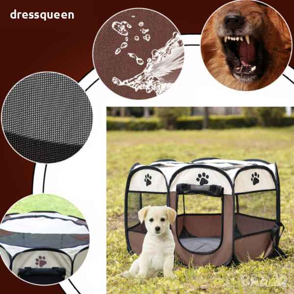 Нашата мрежеста кошара за игра на открито или закрито е проектирана да осигури на домашни любимци безопасна затворена зона, така че домашните любимци да могат да играят или да си почиват, независимо дали са на закрито или по време на семейно пътуване на открито. Кошарата за домашни любимци има подвижна горна плоча, отваряне с цип и 360-градусов отворен мрежест изглед, който може значително да подобри въздушния поток и е идеален за топло време.