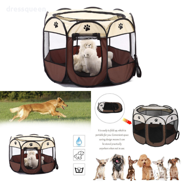 Сгъваема кошара за домашни любимци е отличен начин да осигурите на домашния си любимец безопасност, сигурност и комфорт. Тази здрава кошара има водоустойчива основа, така че може да се използва на закрито или на открито. Тя е лесна за сглобяване и може да се сгъва за лесно съхранение, когато не се използва. Тя се предлага с два прозореца с цип, които улесняват достъпа до животното, като същевременно го държат в безопасност вътре в кошарата.