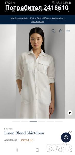 POLO Ralph Lauren Лен /Вискоза Womens Shirtdress Size 0 /S НОВО! ОРИГИНАЛ! Дамска Ленена Рокля!