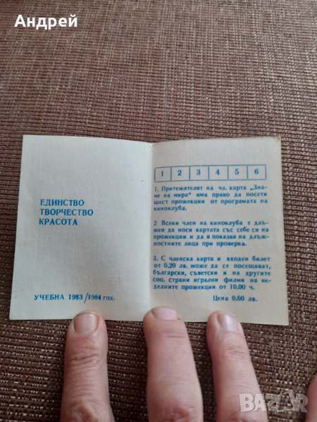 Стара Членска карта Киноклуб Знаме на Мира → Обява 44796064