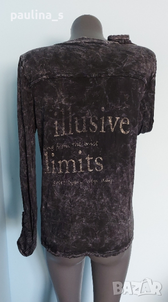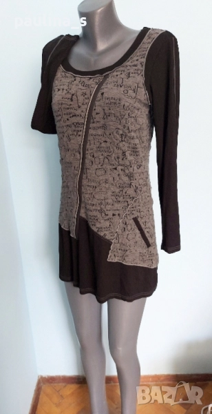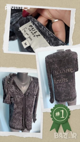 1️⃣. Колаж / L / 2XL - "Pulz jeans". Цената е крайна, без пазарлъци 29,99лв / 15 евро. Маркова много мекичка и еластична вискозна туника с избелващ ефект, щампа на гърба и ръкави с регулация. Нова, без етикет и дефекти, една бройка, става за посочените размери.