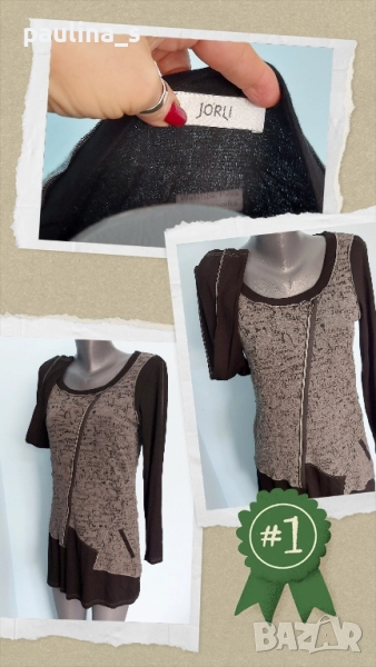 2️⃣. Колаж / L / 2XL - "Jorli". Цената е крайна 19,99лв / 10 евро. Много готина еластична туника с асиметрични декорации, цип и филетка. Не е чисто нова, но е без дефекти, една бройка, става за посочените размери.