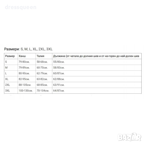 Размер Ханш Талия Дължина (от чатала до долния шев и от на-горен до най-долен шев