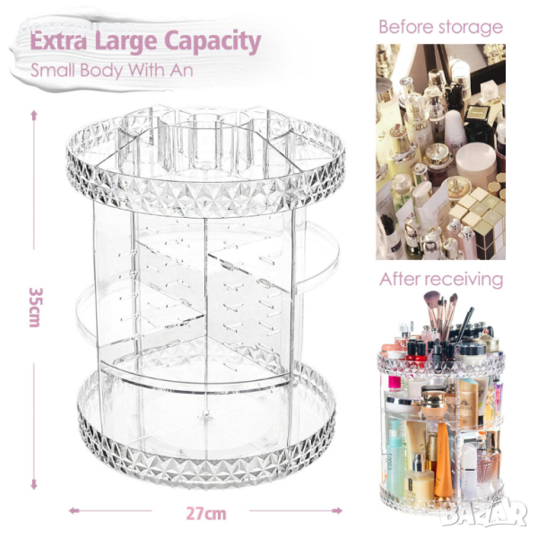 Въртене на 360 градуса: перфектно организира и съхранява вашата козметика, осигурява лесен достъп до всички ваши гримове и продукти;