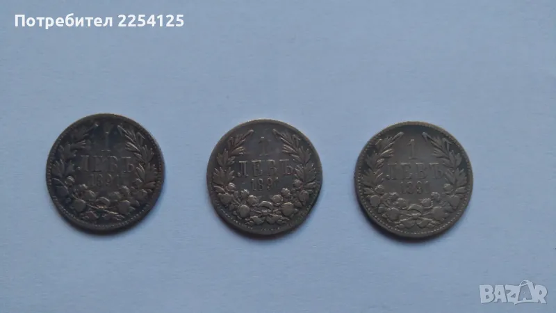 Сребърна монета, 1 лв, 1891г., /необработени/.