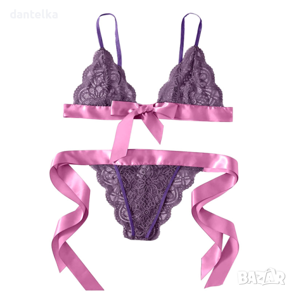 Секси дантелено бельо с панделки. Дамски сутиен от мека на допир флорална дантела с широка сатенена лента. Еротичен сутиен с регулируеми презрамки за фиксиране към фигурата ви. Към сутиена е добавен сатенена панделка, допълваща перфектният ти образ със съблазнителност. Секси комплект, който може да се регулира, така че да прилегне плътно по тялото ти. Сексапилен сутиен, който привлича мъжките погледи! Сутиена е толкова мек и удобен, че спокойно може да се носи ежедневно, особено в комбинация с дълбоко деколте. Еротичното бельо с дантела е един от най-стилните избори. В нея всяка жена изглежда нежно, зашеметяващо и луксозно.