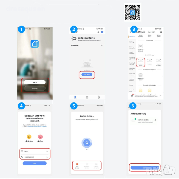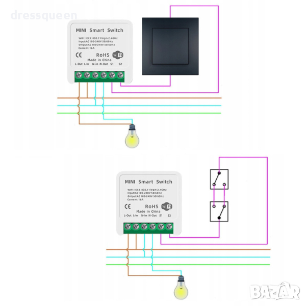 Устройството работи с безплатни приложения Tuya Smart или Smart Life и може да взаимодейства с други умни домашни устройства , за да създава интелигентни сценарии. Например, ако в стая се задейства сензор за движение или отваряне на врата, релето автоматично включва осветлението в тази стая.
