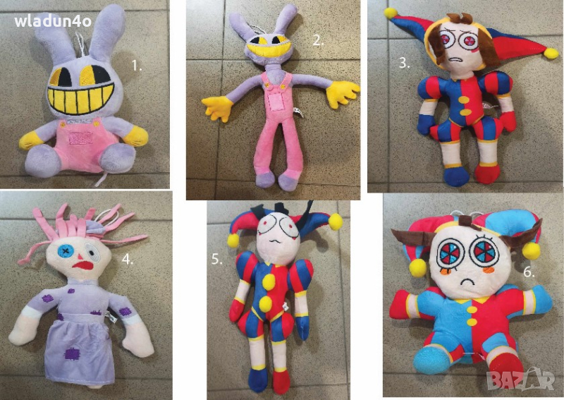 НОВИ Герои The Amazing Digital Circus Плюшени герои и ключодържатели 1.Цена за 1-н бр.плюшен герой- 13лв 2.Цена за 1-н бр.ключодържател (пластмасова фигурка) - 6лв 2.1.-Цена за 1-н бр.ключодържател плюшен герой- 7лв ***** В друга моя обява има II серия нови герои ,както и комплект от 12 фигурки -разгледайте ги/последните снимки/