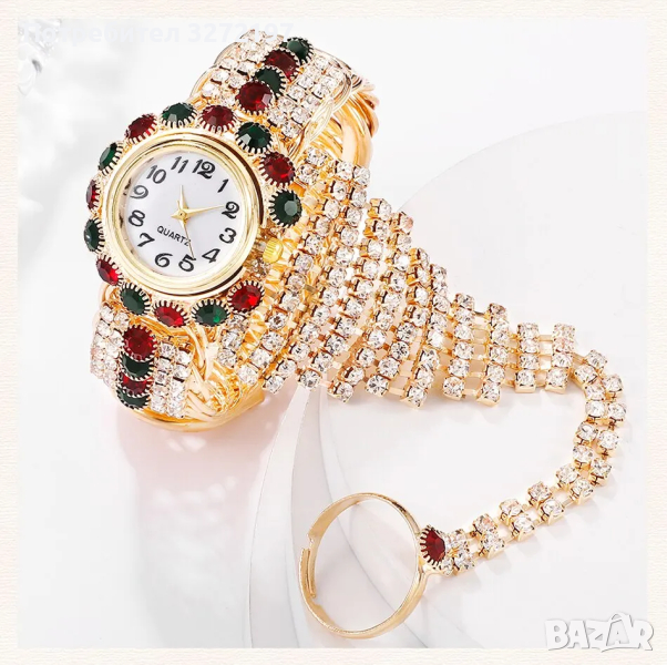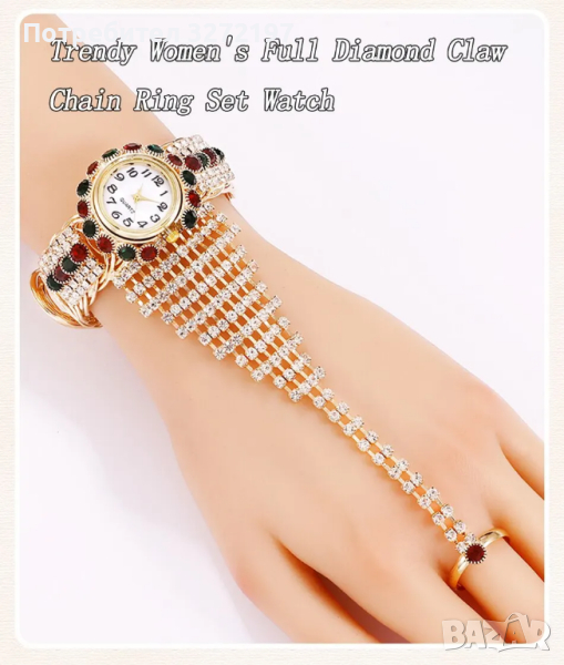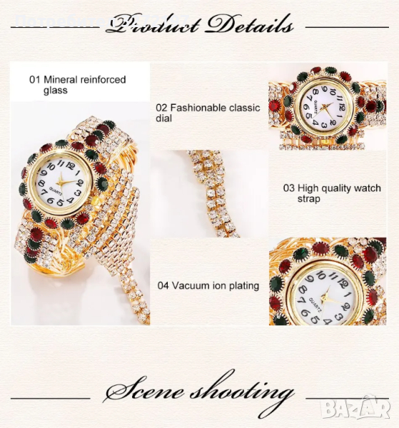 • Дизайн, инкрустиран с диаманти: Часовникът се отличава със зашеметяващ дизайн, инкрустиран с диаманти, който добавя нотка елегантност и изтънченост към всяко облекло.