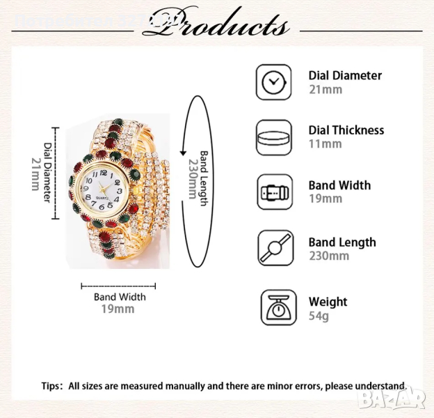Приблизителна дължина на лентата на часовника: 230 мм