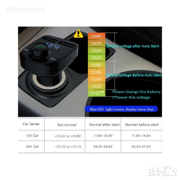 5в1 FM Трансмитер X8 - Bluetooth, USB, FM аудио предавател, MP3 плейър, Handsfree, USB зарядно е уникален уред, който ви дава възможността да слушате музика в автомобила напълно безжично, както и да приемате разговори чрез функцията "Свободни ръце", да зареждате две устройства едновременно или да слушате музика през USB от флашка или директно от MicroSD.