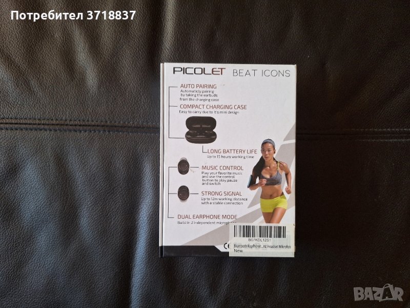 Безжични слушалки Picolet Beat Icons, подходящи за спорт, влагоустойчиви. Без кабел за зареждане.