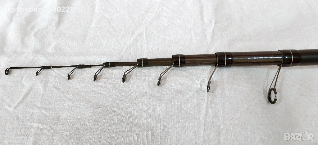 Качествено болонезе, изработено от високомодулен HM2 карбон, тънки бланки. Лека, много здрава и издръжлива, 6 секции, дължина 6 м, транспортна дължина 137 см, прогресивна акция 10-30 гр, 8 броя SIC водачи, от които 2 подвижни (с карбонови втулки), тегло 256 гр. Пръчката е малко ползвана, има няколко съвсем леки следи от употреба, предимно по долната част на дръжката. Вече се дава с друг предпазител за водачите, не този от снимките. Цената е намалена и крайна - окончателна!