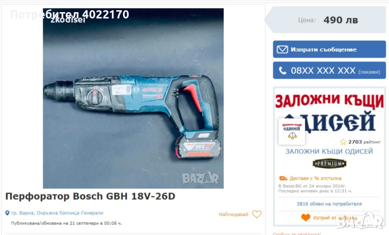 Професионален акумулаторен перфоратор с 3 броя 36 волтови литиево-йонни батерии и още 1 патронник, зарядно с английски щепсел и куфар. В много добро състояние, всички батерии са перфектни, зареждани са преди повече от година и още имат много ток. Машината е внос от Англия. Цената е без коментар и е за всичко описано комплект, нищо не се продава отделно! Цената му нов в БГ е била 1600 лв само с 1 батерия, а тук има 3, както и допълнителен патронник, за да може да се ползват обикновенни свредла и къртачи. На последните две снимки ще видите по заложни къщи какво и на какви цени продават! Само за лично вземане, с Еконт цената е 307 евро.