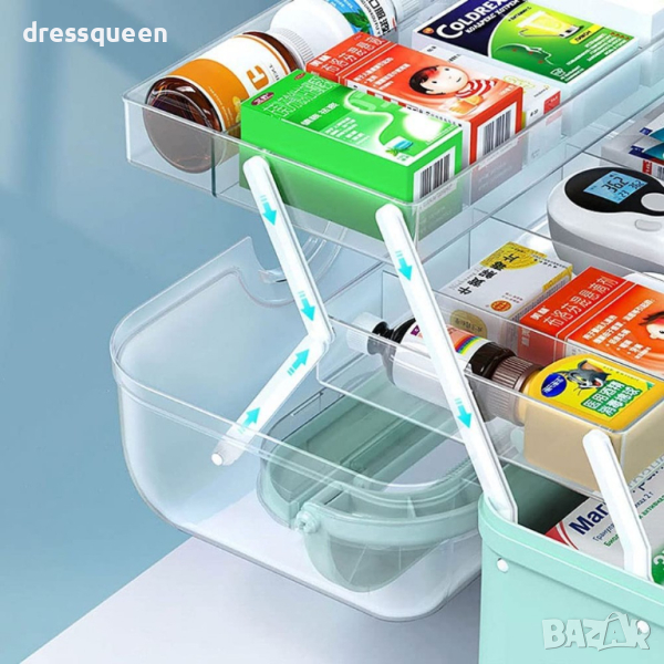 Голем куфар идеален за домашно съхранение на лекарства, витамини и билкови препарати. Прозрачният капак предпазва лекарствата от прах и ви позволява лесно да разпознаете съдържанието вътре, а многопластовите отделения помагат за подреждането на хапчетата и лекарствата, за да ги намерите лесно при спешни медицински случаи. Този органайзер за лекарства има отделни отделения с различни размери, така че да можете да организирате лекарствата, които пристигат в различни по форма или размер кутии, или още по-лесно - ако имате голям брой лекарства.