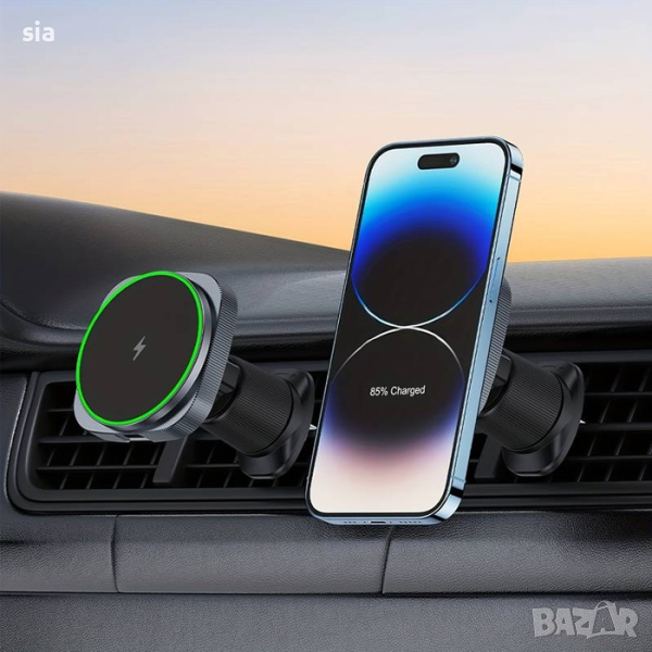 Стойка за телефон + Безжично Зареждане, Магнитна поставка за телефон за кола