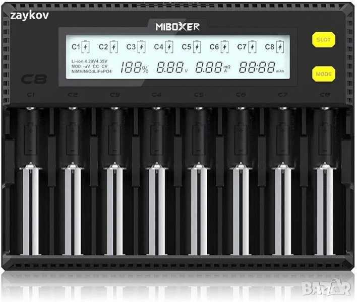 MiBOXER 18650 Зарядно устройство за батерии, 8-отсечно интелигентно зарядно устройство