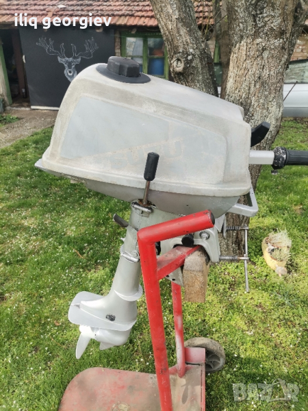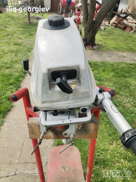 Пали и работи 3,5 коня двутактов с вътрешен резервоар къс ботуш вади звук като на педалетка изпробван не ме е оставял в язовир.