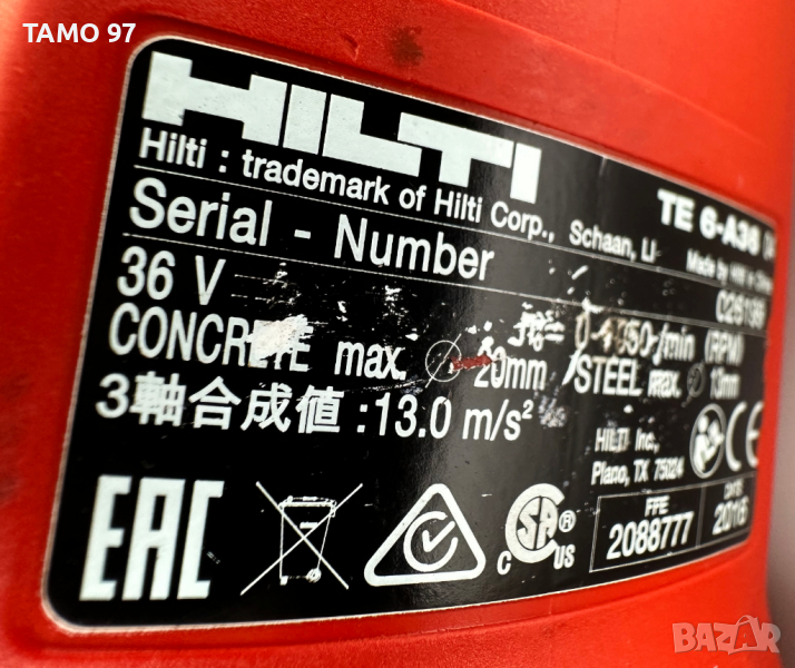 Продавам мощен акумулаторен перфоратор на Хилти в отлично визуално състояние и работи перфектно, внос от Франция. Обявената цена включва машината с две батерии по 36V 5.2Ah с индикатор и бързо зарядно. Пращаме с опция преглед и тест с куриерска фирма еконт може и лично предаване за гр. Шумен.