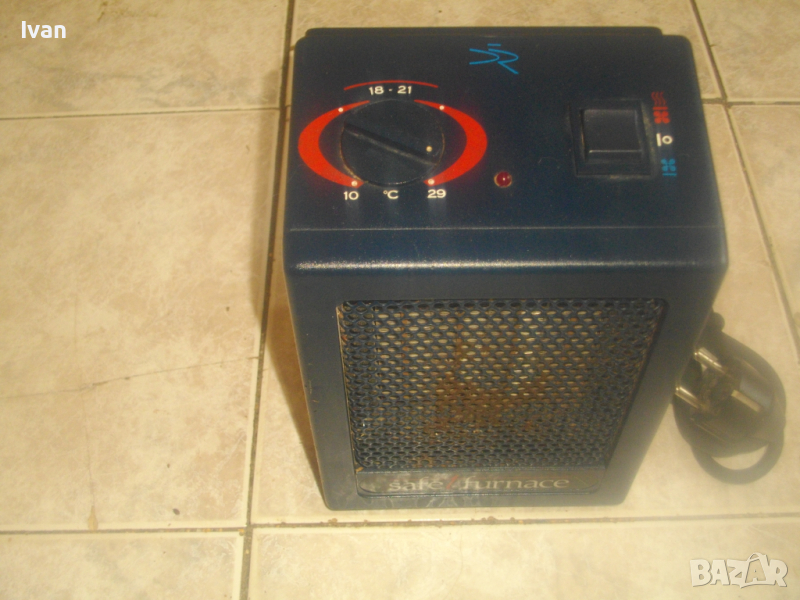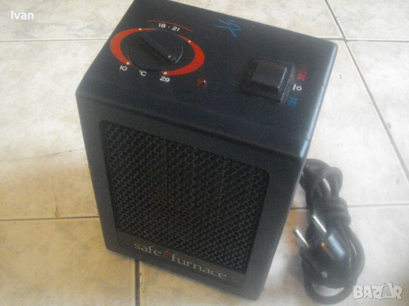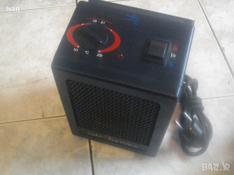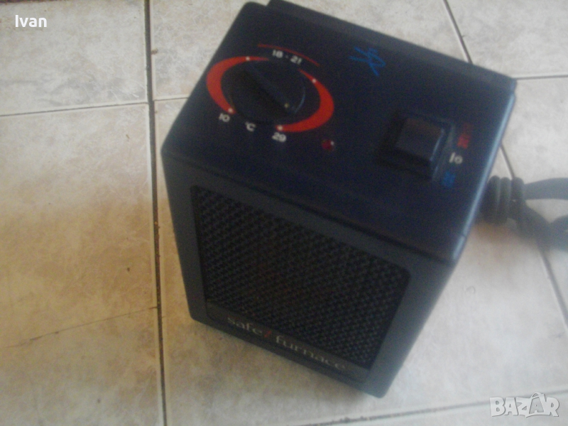ОПИСАНИЕ на мини електрически отоплител 1,5 KW. Цена 99 лв. Старо масивно холандско/нидерландско професионално качество. Отлично работно, техническо и визуално състояние. Без забележки. Почти нов. Мощност 1,5 киловата/1500 вата, развиваща температура с регулация 10-29 градуса Целзий. Маркировки/марка/модел Safet furnace model BN 944T - Input 220240 V - 50 Hz - 1500 W - TUV - The Netherlands made in Europe - Pased Tested. Масивни, стабилни крачета отдолу за самостоятелен стоеж. Метален изцяло корпус, метална решетка отпред, ключ функции - студено/топло. Вградена дръжка.Размери на уреда: ширина 15 см, дължина 14 см, височина 21 см. Тегло на уреда - 2,0 кг. Цена 99 лв - без коментар.
