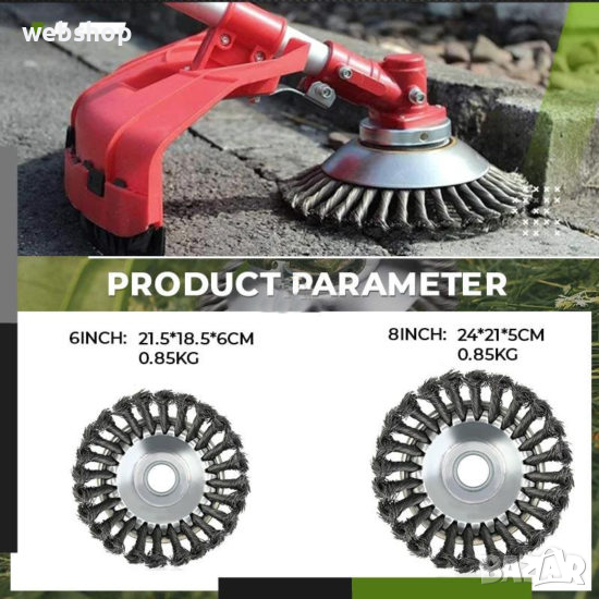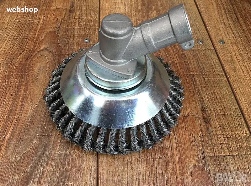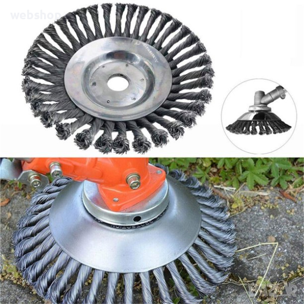 Този модел неръждаема глава за електрическа косачка се предлага в 6 инчов вариант. 6-инчовата глава е телена четка и е подходяща за косачки, работещи с масло, както и са подстригване на моравата, почистване на израстъци от пътеки и премахване на упорити плевели. Главата от неръждаема стомана е супер здрава и устойчива и е предназначена за премахване различни видове треви.