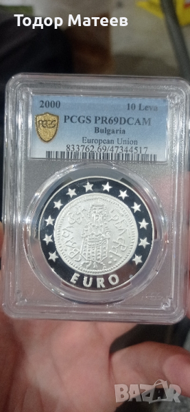 Здравейте, продавам 10 лева 2000 година сертифицирана в PCGS PR69DCAM. Монетата е TOP POP и в двете компании