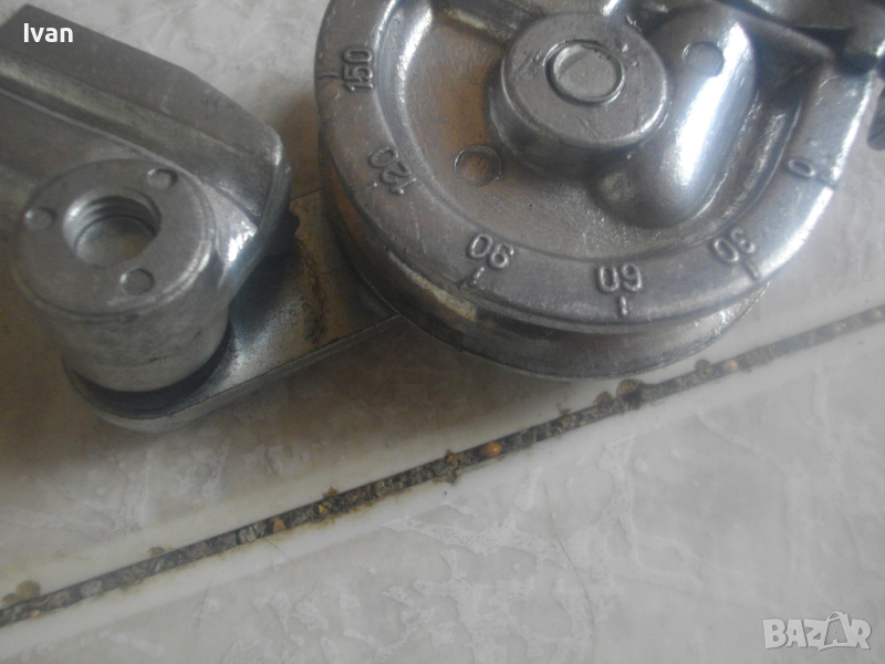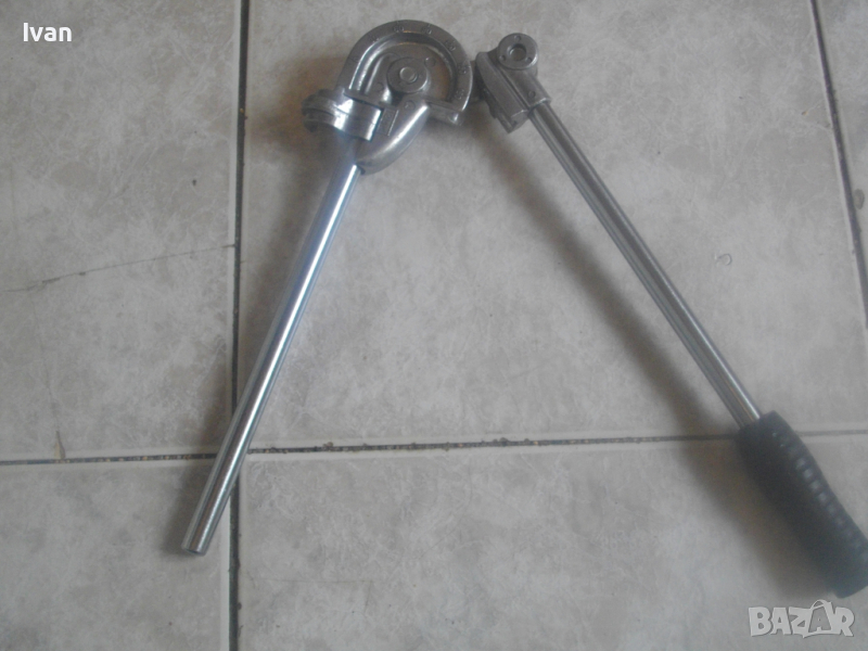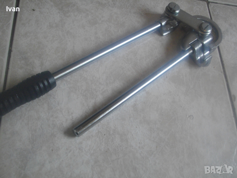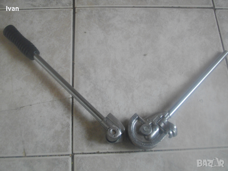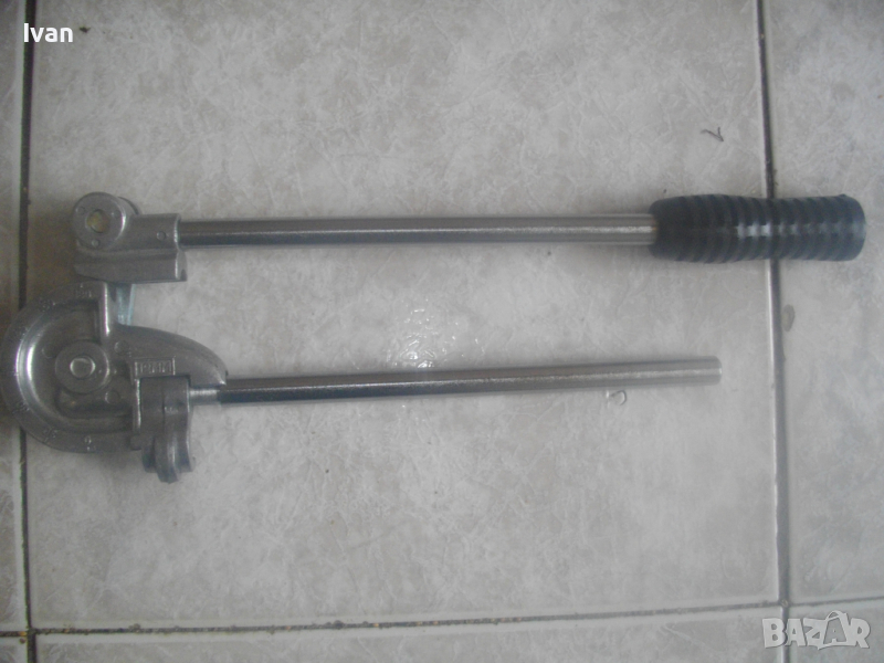 ОПИСАНИЕ на нов немски ръчен тръбогиб 12 мм. Цена 129 лв. Немски оригинален ръчен уред за огъване на меки и полутвърди тръби с иаметър до ф 12 мм. Отлично работно състояние. Без забележки. Дължина 320 мм, ширина 95 мм, алуминиева глава, дръжки метални тръби ф 15 мм, гумирано нехлъзгащо се релефно покритие на дръжка, водач за огъвана тръба алуминиев. Огъване -0-180 градуса, радиус огъване 30 мм. Цена 129 лв.
