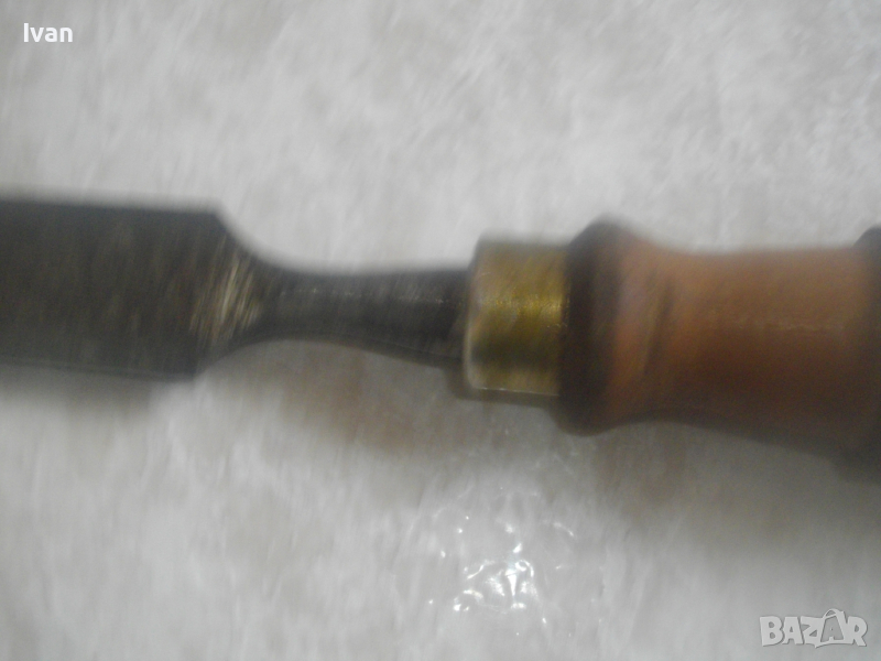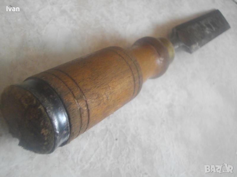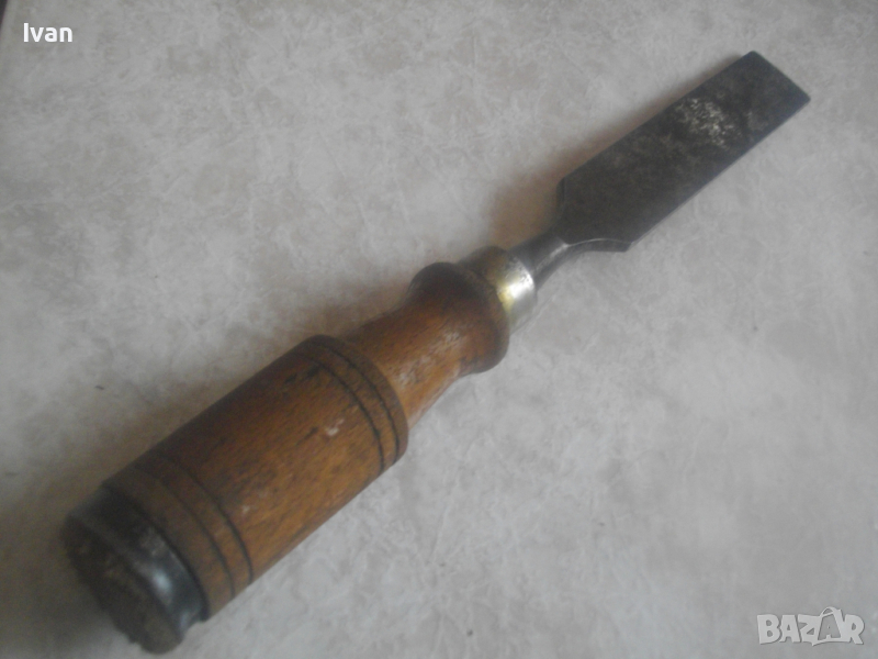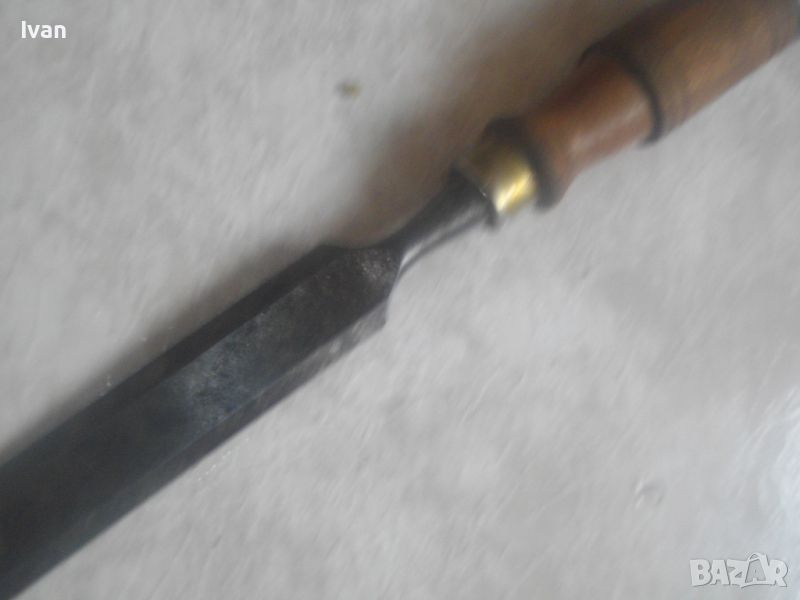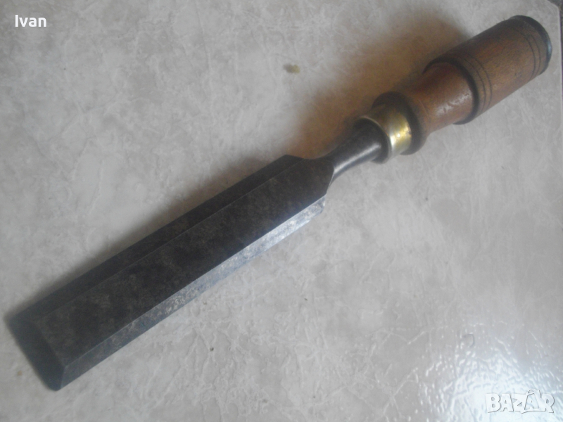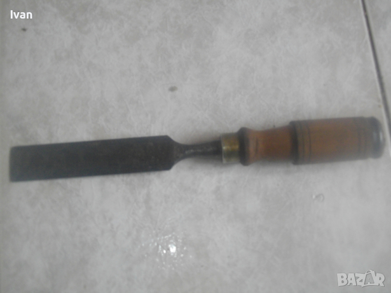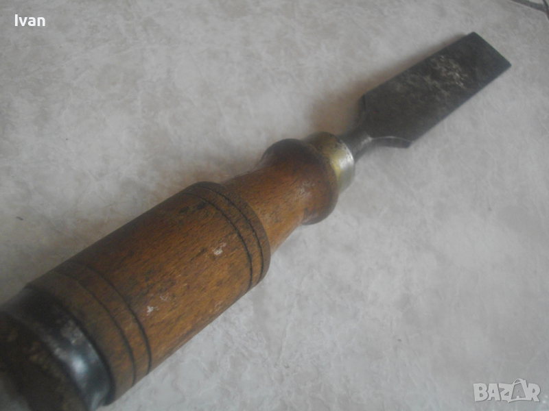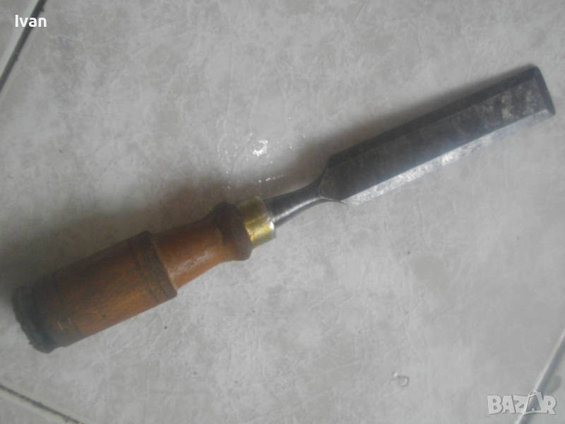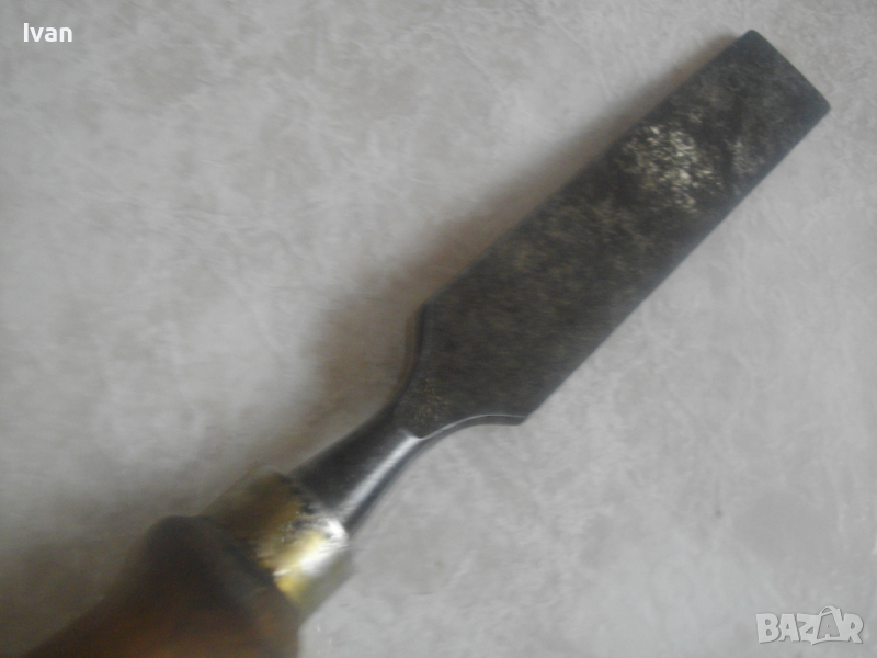 ОПИСАНИЕ на ръчно стругарско длето 25 мм ширина за дърворзба и стружуване при дърообработка. Цена 49 лв. Малко ползвано, професионално. Фабричната маркировка е поизтрита, била е печат, виижда се съвсем леко и отчасти. Инструментът е от старото качество материал.Масивен, от закалена инструментална стомана. Цялостна дължина 170 мм, ширина острие 25 мм. Работна дължина 115 мм. Масивна дървена дръжка ф 30 мм, с пристягащ метален пръстен. По острието няма абсолютно никакви наранявания. Цена на длетото 25 мм ширина - 49 лв.
